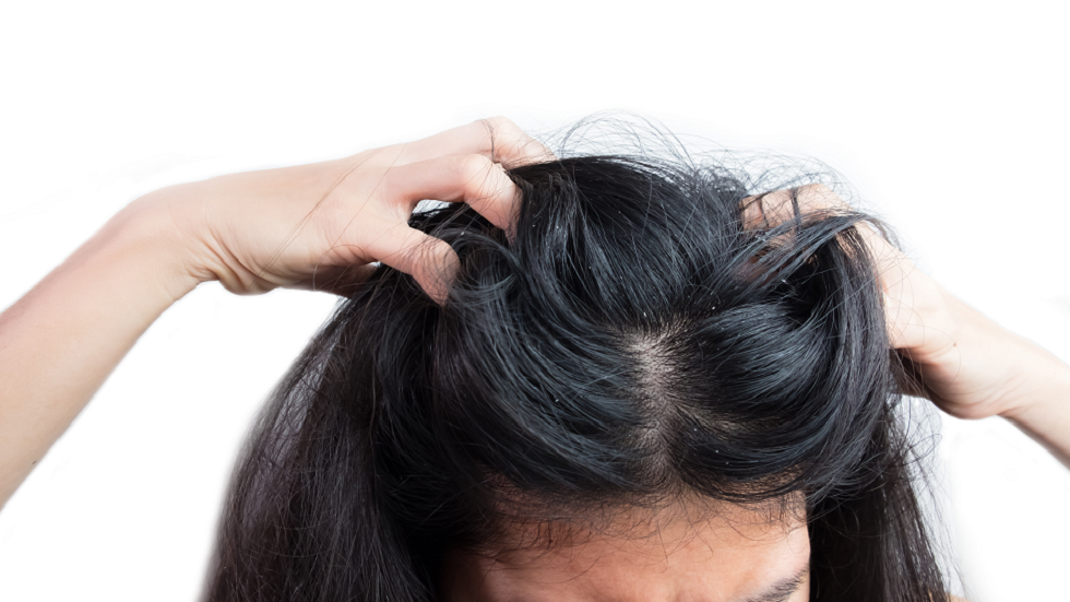 - ضع 4-6 قطرات من المصل على فروة الرأس.